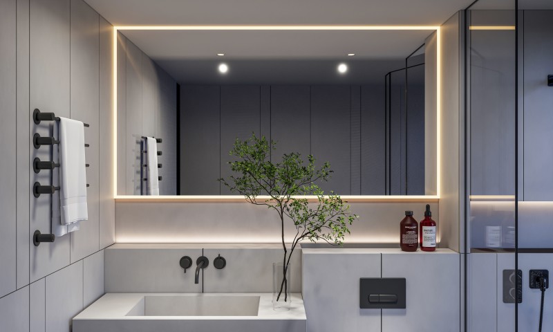 Умные датчики позволяют автоматически регулировать освещение и температуру воздуха, делая процесс принятия водных процедур максимально комфортным.