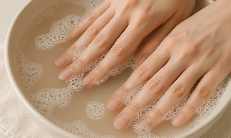 Сделайте ванночку для рук: Наполните небольшую миску теплой водой, добавьте немного жидкого мыла или геля для душа. Опустите руки в ванночку на 5-10 минут, чтобы размягчить кутикулу.