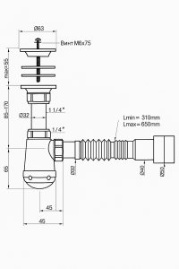 Сифон для умывальника АНИ 1 1/4'X40 с гибкой трубой 40х40/50